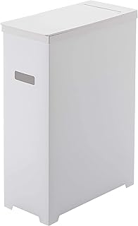 山崎実業(Yamazaki) スリム蓋付きゴミ箱 ホワイト 約W19XD40XH54cm タワー 折り畳んで運べる 5203