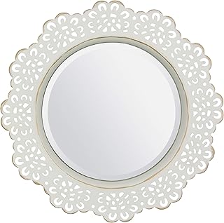 Stonebriar White Decorative Metal Lace Beveled Mirror for Wall with Attached Mounting Bracket, Gold Highlights 141[並行輸入]