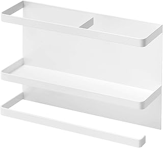 山崎実業 マグネット冷蔵庫サイドラック ホワイト 約W24.5×D6.5×H34cm プレート キッチンペーパーホルダー 2907 & マグネットスパイスラック プレート ホワイト 2410【セット買い】