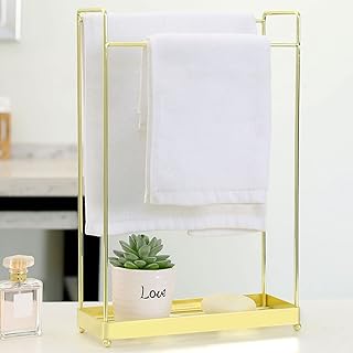 MyGift 2段 モダン 真鍮メッキメタル バスルーム カウンタートップ ハンドタオルホルダー バーラック ワイヤー収納トレイ付き