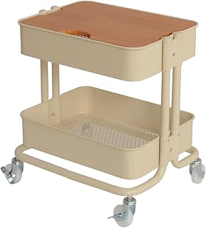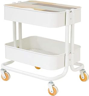 キッチン収納 2段キッチンワゴン 天板付きワゴン キャスター付き サイドテーブル スチールラック ベビーワゴン カラー6色 (アイボリー奥行き365)