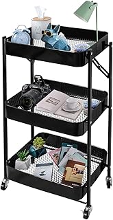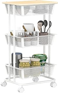 Ceeyali キッチン収納 バスケットトローリー キャスター付き 3段 マルチワゴン 収納ラック マルチワゴン キッチン収納 小物収納 耐荷重60kg (ブラック)