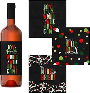Oh What Fun クリスマスワインボトルラベル (9パック) ホリデーパーティー用品 – ギフトバッグタグ – 多目的ステッカー – DIY – レッドグリーン