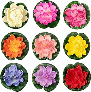 RONRONS 9パック 人工観葉植物 水槽オブジェ オーナメント 人工蓮 浮遊泡 蓮花 カラフル スイレンパッド 装飾 10cm