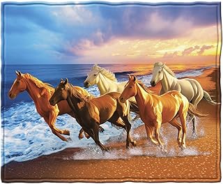 Dawhud Direct Horses on The Beach スーパーソフトプラッシュフリーススローブランケット