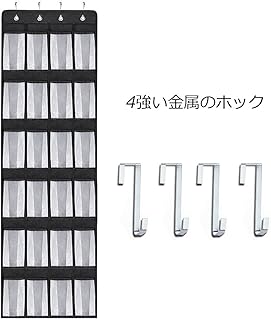 Eholily 靴収納 ウォールポケット24ポケット[オックスフォード・ファブリック] 壁掛け式シューラック 靴下着小物収納 ウォールラック 壁掛け式フック付き