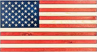 Handcrafted Wooden American Flag 32" x 17" - Handmade by USA Veterans | Durable for Indoor/Outdoor Use | Ready to Hang | Heavy Duty Plywood Backing w/ 3-D Stars