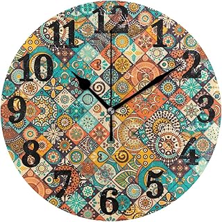 AHOMY ラウンドウォールクロック ヴィンテージ マーブル メキシカンセラミックタイル メダリオン ホームアート装飾 チッキングしない数字時計 ホームオフィス用