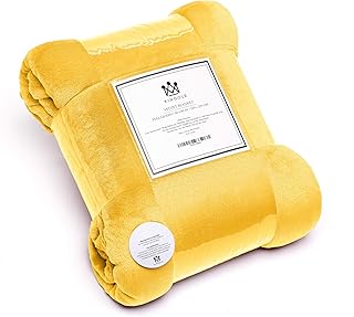 Kingole フランネルフリースマイクロファイバースローブランケット ラグジュアリーイエロー 旅行/スローサイズ 軽量 快適 カウチベッド スーパーソフトで暖かい フラシ天 無地 250GSM (50 x 60インチ)