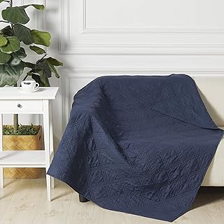 Levtex home - 100%リネンフロント/100%コットンバック - キルティングスロー - ウォッシュドリネン - ネイビー - スローサイズ(50 x 60インチ)