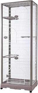 タンスのゲン 猫ケージ 4段 幅69×奥行47×高さ187cm コンパクト 組み立て簡単 引き出しトレー ステップ台 キャスター付 キャットケージ 猫 ワイド扉 ホワイト×ブラウン 52800006 BR(59415)