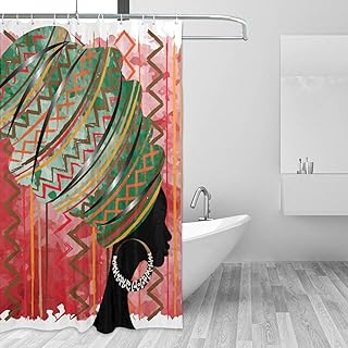 抽象アフリカンアメリカン ガール 防カビシャワーカーテン フック付き ファッション 防水 浴室カーテン Sサイズ 幅62インチ x 高さ72インチ
