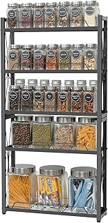 5段 スパイスラック オーガナイザー 高さ調節可能 壁取り付け カウンタートップ スパイス棚 ストレージ キッチン パントリーキャビネットドア用 二重使用 調味料ホルダーラック